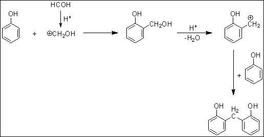 | Q319★ノボラックとレゾールを学習したときに酸触媒では付加反応よりも縮合が起こりやすくなり、塩基触媒では付加反応が起こりやすくなると知りました。どうして液性(酸性or塩基性)によって反応に違いがみられるのでしょうか? 両方の樹脂ともにフェノールとホルムアルデヒドとの反応で合成します。酸触媒を用いて反応するとノボラック樹脂が生成し,アルカリ触媒を用いて反応するとレゾール樹脂が生成します。 まず,酸触媒を用いると,ホルムアルデヒドは「 つぎに,アルカリ触媒を用いると,今度はフェノールの「-OH」が「-O 上記の通り,酸触媒においてもアルカリ触媒においても,付加反応と縮合反応のどちらか一方の反応しか起こらないというわけではありません。酸触媒においては,縮合反応が付加反応に比して起こりやすく,アルカリ触媒では付加反応が縮合反応に比して起こりやすく,前者からは「-CH2OH」含量の少ないノボラック樹脂が生成し,後者からは「-CH2OH」含量の多いレゾール樹脂が生成するのです。 以上の反応過程を図にすると,以下のようになります。 酸触媒を用いるとき ![]() アルカリ触媒を用いるとき ![]() (YN) 2009/02/06 |