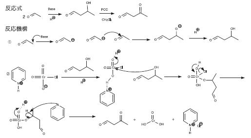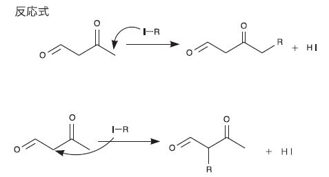 | Q401★化学部にて1,3-butanedioneとその炭素鎖を伸ばした数種類の化合物の合成を計画しています。それらのうちいくつかの化合物は熱に弱いという特徴があります。1)簡単に熱で分解、変性する化合物の構造決定の仕方はあるか、2)1,3-butanedioneの合成と炭素鎖を伸ばす反応の反応機構は適切か、3)1,3-butanedioneの攪拌終了をどのように決定すれば良いか、4)炭素鎖を伸ばす反応とヨウ化アルキル合成の反応条件と規模はどの様なものか、について教えてください。 *質問者が計画した合成方法と反応機構については下記に記載 1) 簡単に熱で分解、変性する化合物の構造決定の仕方はあるか 有機化合物の構造決定にはNMRがよく用いられます(他の方法に比べてスペクトル中に含まれる情報量が多いため)。あるいは、質量分析によって分子イオンピークやフラグメントピークを検出したり、IR、UVなどの分光法によって特徴的な吸収ピークが望みの化合物のそれと一致するかどうかによっても確認できます。これらの機器では加熱することなく常温で測定可能です。常温でも不安定な物質もありますが、その場合は液体窒素などで低温にして測定します。それでも不安定で分解してしまうような場合は、むしろ分解を進めさせて、最終的に何ができるのかを調べるのも方法の一つです。 2) 1,3-butanedioneの合成と炭素鎖を伸ばす反応の反応機構は適切か 1,3-ブタンジオンの合成の反応機構に関しては、①と②のどちらも概ねよろしいのではと思います。①のアルドール反応の機構については、最初の段階において塩基は炭素ではなく水素を攻撃してプロトンとして引き抜きカルボアニオンが生成しますので、塩基が水素を攻撃するように巻矢印(電子対の動きを示す矢印)を描くのがよいでしょう。詳しい反応機構は大学生が使用するような有機化学の教科書(例えばボルハルトショアー現代有機化学 第8版 下 p.1090)に記載されていますのでそちらをご覧ください。②のPCC酸化については、最後の段階(ピリジンが攻撃してケトンが生成する段階)において、Cr-O結合からCrに向けた巻矢印も追加するとよいでしょう。 炭素鎖を伸ばす反応について、残念ながらこの反応はうまく進まないのではないかと考えられます。1,3-ブタンジオンに対して塩基を用いてカルボアニオンを発生させて、それをヨウ化アルキルと反応させようとしても、1,3-ブタンジオンには反応性の高いホルミル基(アルデヒド基)がありますのでカルボアニオンがそちらを攻撃するような反応が進んでしまい、結果的に複雑な混合物を与えてしまう可能性が高いと考えられます。従って、炭素鎖を伸ばした1,3-ジケトンを合成する場合には他の合成法を用いる必要がありそうです(後述)。 3) 1,3-butanedioneの攪拌終了をどのように決定すれば良いか 反応が終了したことを示すのは原料がなくなるか、原料がなくなる速度が遅くなって、これ以上反応が進まないと判断したときです。創意と工夫とで終点を判断する必要があります。分析機器を使用して反応が終了したかどうか調べたい場合は、NMRを用いて反応溶液を測定するのが最もわかりやすいのではと考えられます。IRやUV-Visなどの分光法で反応を追跡し、スペクトルの経時変化が起こらなくなった時点で反応が完結したものとしてもよいかもしれません。これらの反応は通常、数時間程度で容易に進行しますので、こういった機器がなければ、反応が終了したかどうかについては特に調べなくてもよいでしょう。いずれにしても最終的には、単離した生成物の構造を何らかの機器を用いて確認する必要はあります。 4) 炭素鎖を伸ばす反応とヨウ化アルキル合成の反応条件と規模はどの様なものか アルコールからのヨウ化アルキルの合成については、実験化学講座 第4版19巻p.467-および第5版13巻p.452-などに載っています。詳しい合成法(反応条件や規模)はそちらの実験例か、あるいは実験化学講座のなかで引用されている参考文献に記載の合成法を参考にしてください。 炭素鎖を伸ばした1,3-ジケトンの合成法として、例えば1,3-オクタンジオンであれば、ナトリウムエトキシドを用いた塩基性条件下での2-ヘプタノンとギ酸エチルとの反応によって合成する方法が報告されています(詳しい反応条件などはEapen, K. C. et al., Journal of Organic Chemistry 1988, 53(23), 5564を参照してください)。この合成法において、2-ヘプタノンに代えて2-ウンデカノンを用いれば1,3-ドデカンジオン(デカノイルアセトアルデヒド)を合成できると考えられます。2-アルカノンから塩基を用いて末端部分にカルボアニオンを発生させて、それをギ酸エチルに攻撃させるという合成方法です。 中2 (YU, AK) 2022/10/25 質問者が計画した反応機構について 1,3-ブタンジオン(1,3-butanedione)の合成 ![]() 実験手順 ①アセトアルデヒド20mlと10%水酸化ナトリウム水溶液10mlを100mlコニカルビーカーに加え、5〜10℃に反応液を保ったまま撹拌する。攪拌を終えた反応液をジエチルエーテル25〜30mlで2回抽出、エーテル層を