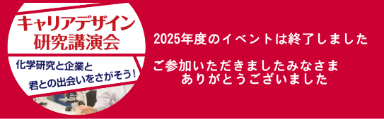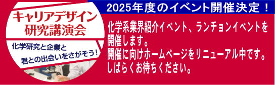 『キャリアデザイン研究講演会 ~化学研究と企業と君との出会いをさがそう!~』のページとトップページを更新しました |